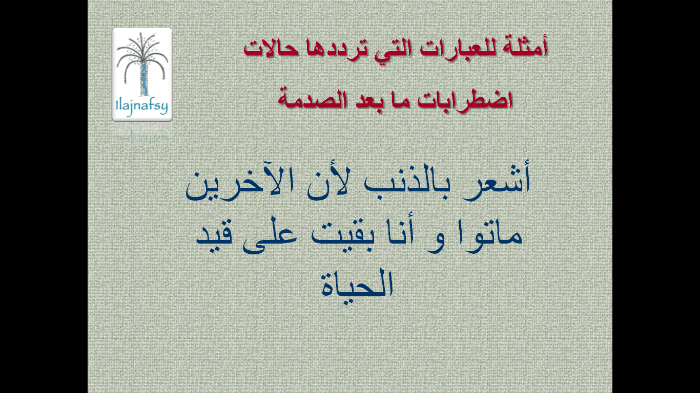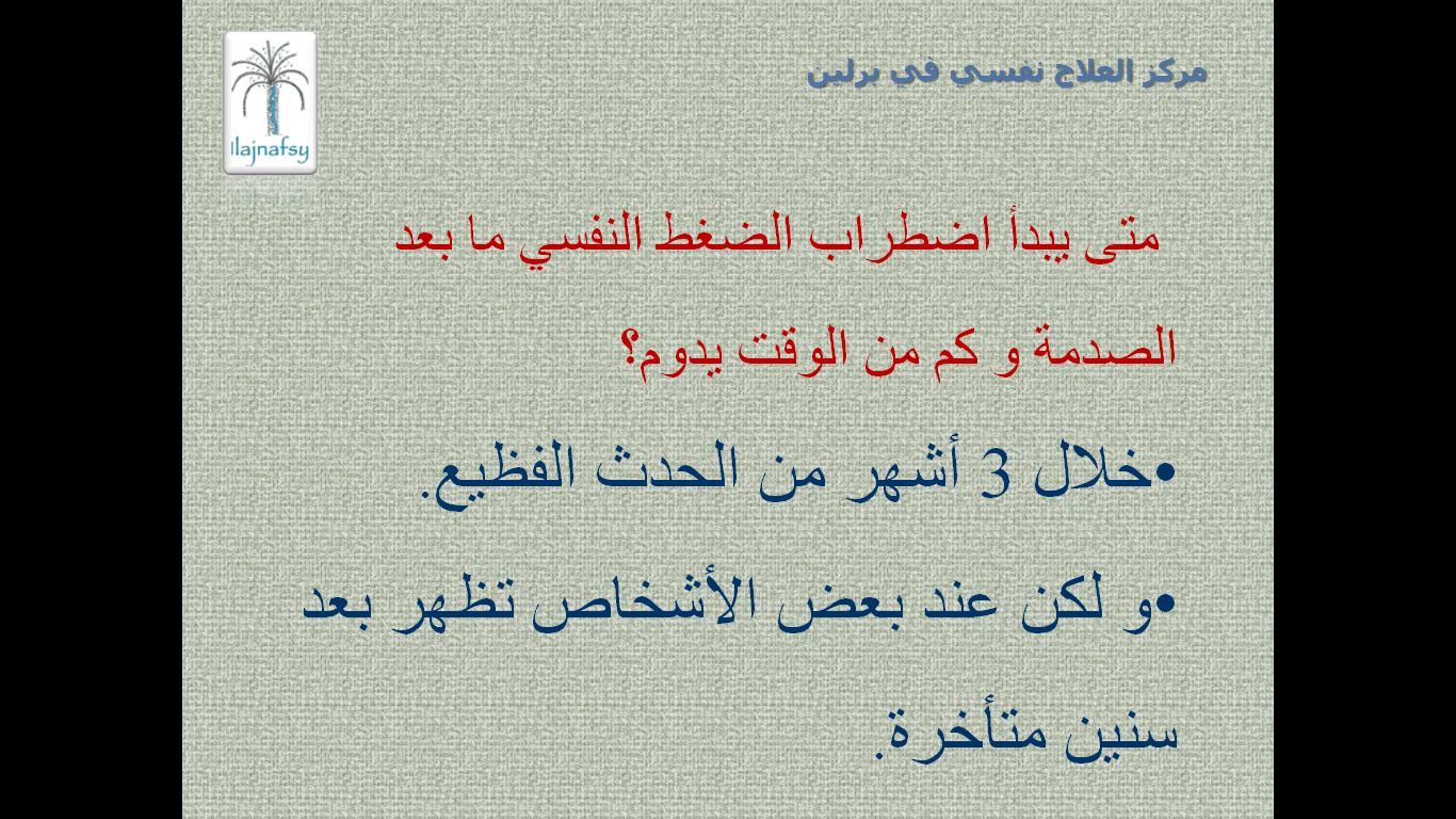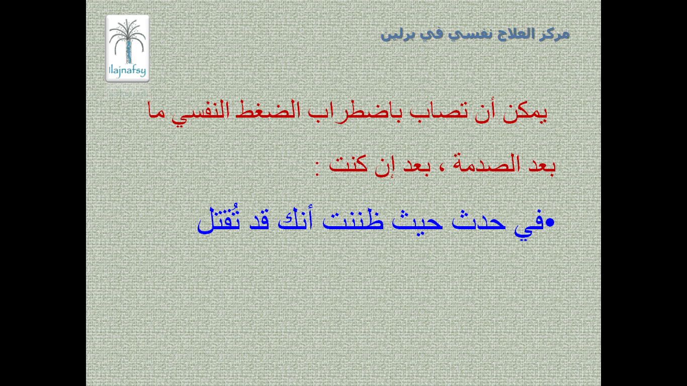 29. أبريل 2014 اضطرابات ما بعد الصدمة اضطرابات ما بعد الصدمة للحصول على جلسات علاج نفسي مجاناً أونلاين برجاء التسجيل من خلال هذا الرابط http://tinyurl.com/kmldxtn نرحب بك في أي وقت فريق علاج نفسي – مركز برلين share share share pocket email