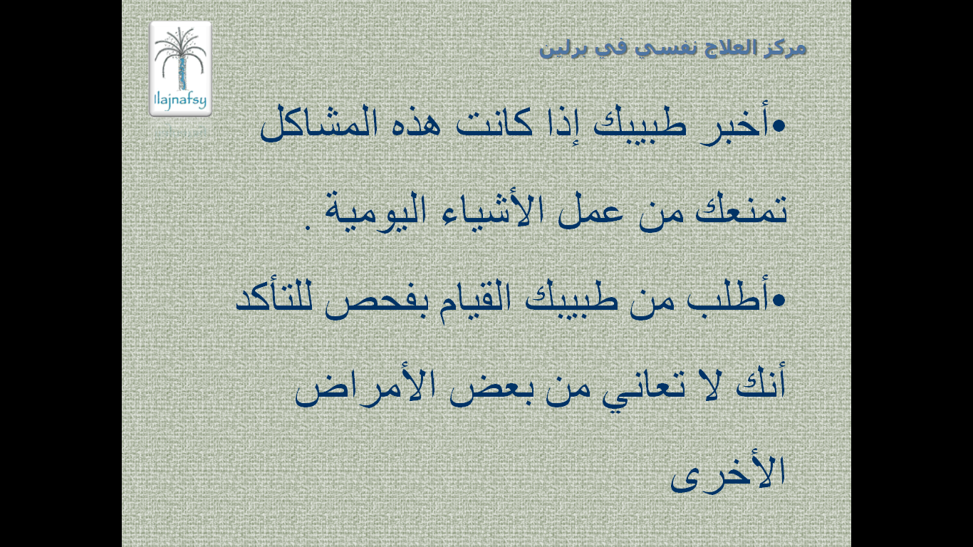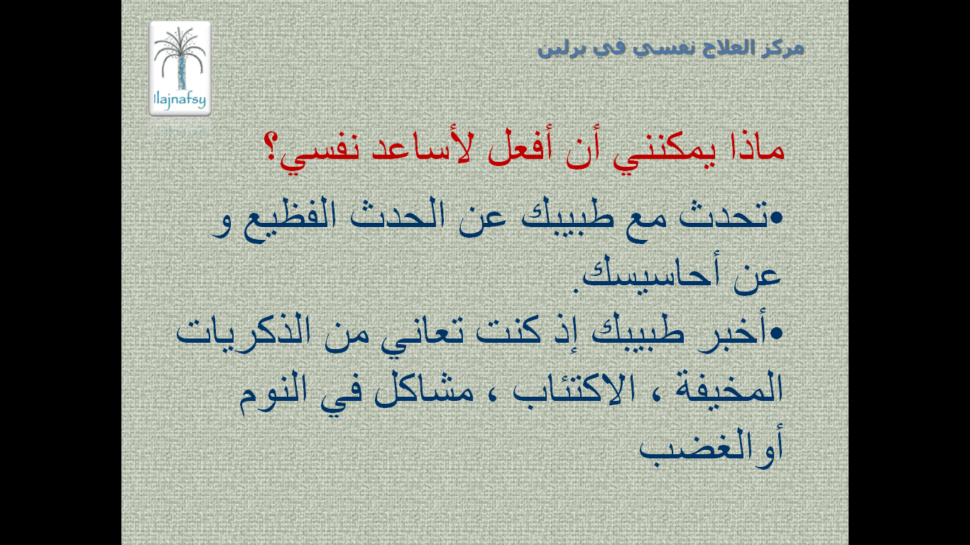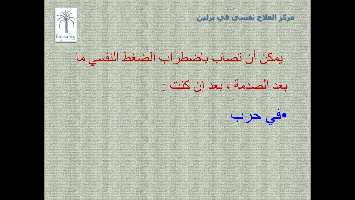 29. أبريل 2014 اضطرابات ما بعد الصدمة اضطرابات ما بعد الصدمة للحصول على جلسات علاج نفسي مجاناً أونلاين برجاء التسجيل من خلال هذا الرابط http://tinyurl.com/kmldxtn نرحب بك في أي وقت فريق علاج نفسي – مركز برلين share share share pocket email