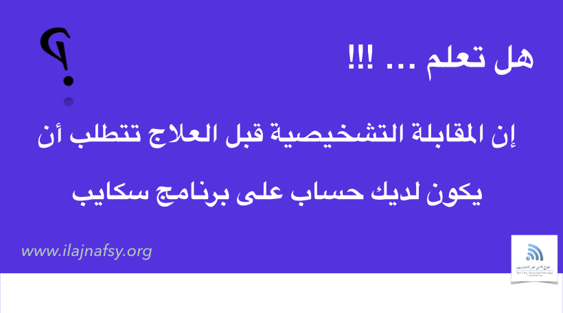 يشترط تحميل برنامج سكايب من أجل المقابلة التشخيصية و التي تتم مرة واحدة فقط في بداية العلاج